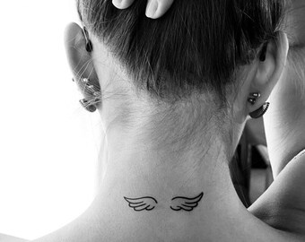 . 35 Angel Wings Tattoo on Neck. Beautifully inked and detailed angel wings but in small size. Portray love freedom protection and spirituality with this small and intricate angel wings tattoo design.